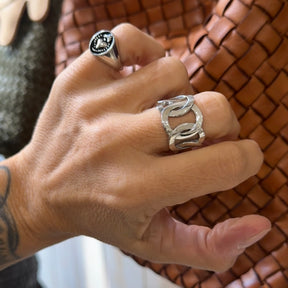 Anello in Argento925 rodiato in Oro Bianco 18 carati interamente lavorata a mano secondo le più sapienti tecniche artigianali.