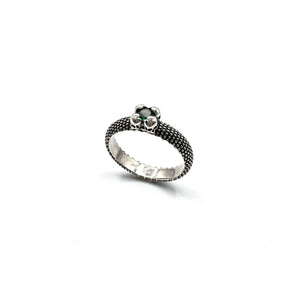 Anello fascia puntinata bombata con castone Teschi e pietra vitrea verde