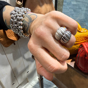 Doppio Anello Fascia regolabile, modello Cornetto lucido e satinato, realizzato in Argento 925% rifinito a mano in Italia.