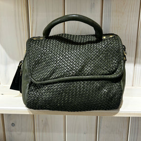 Postina Intrecciata in vera pelle lavata di vitello e tinta, interamente realizzata e prodotta a mano in Italia da un'accurata selezione dei dettagli, ricami e materiali secondo le più sapienti tecniche artigianali.