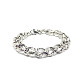 Bracciale composto da catene Grumetta piatta lavorata in Acciaio inossidabile.