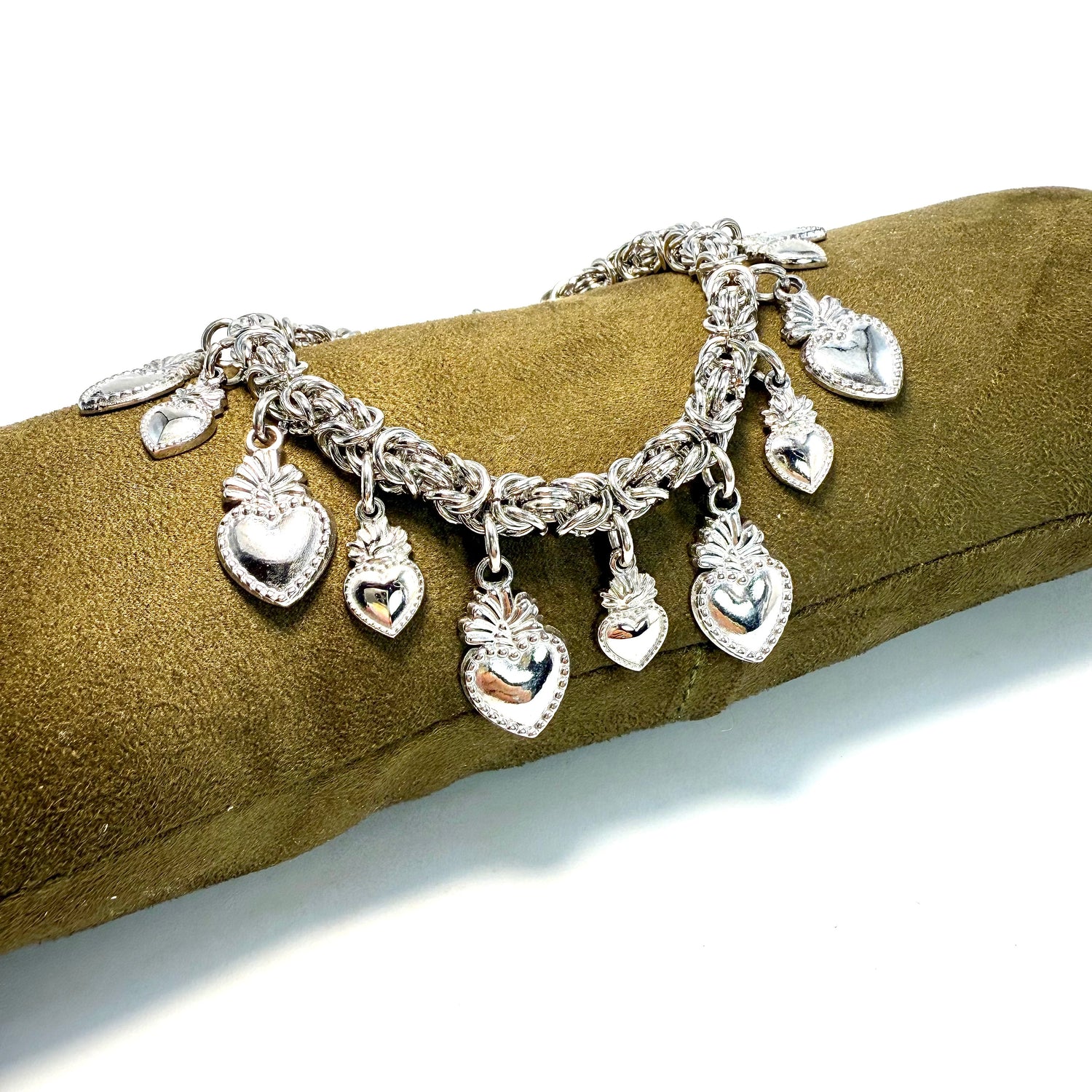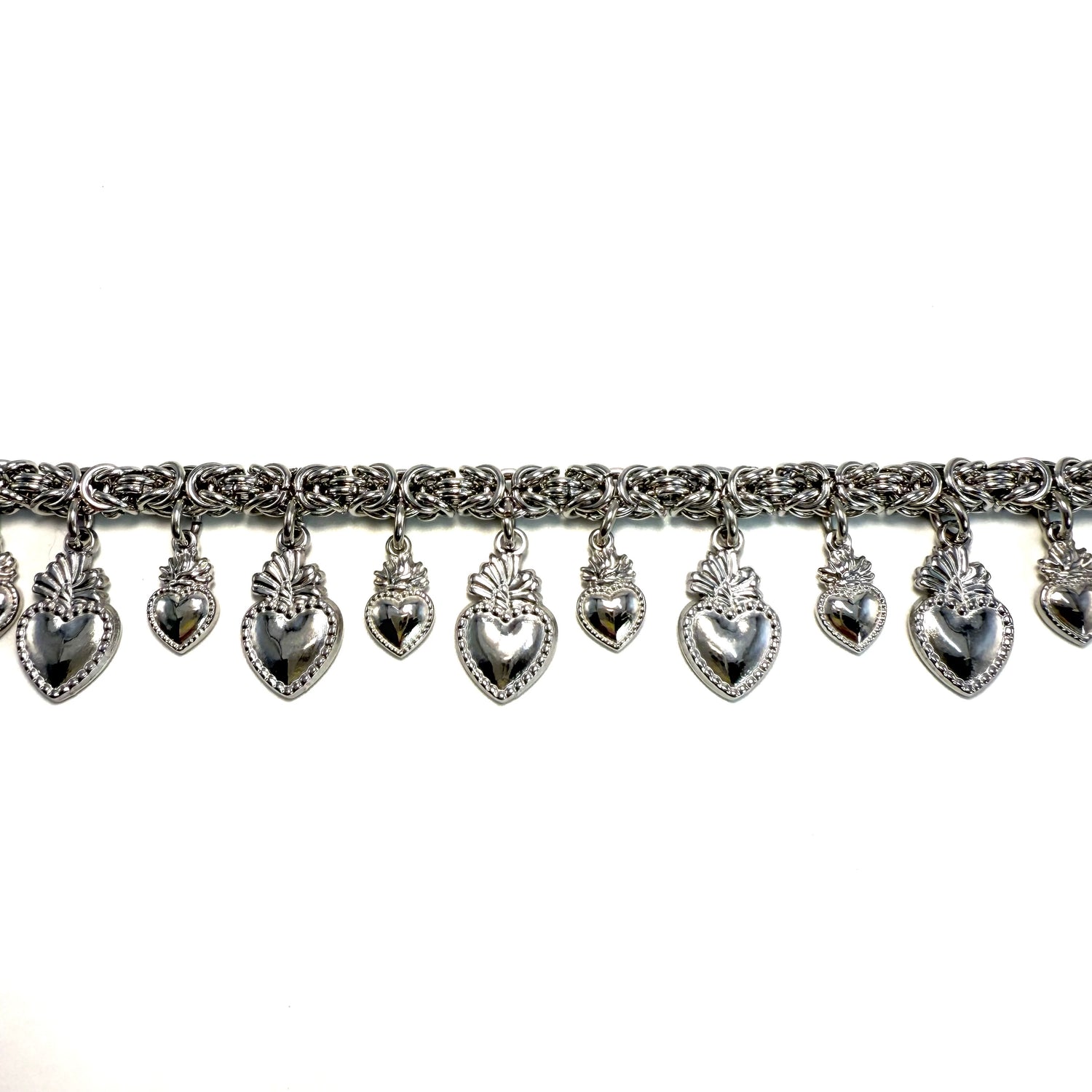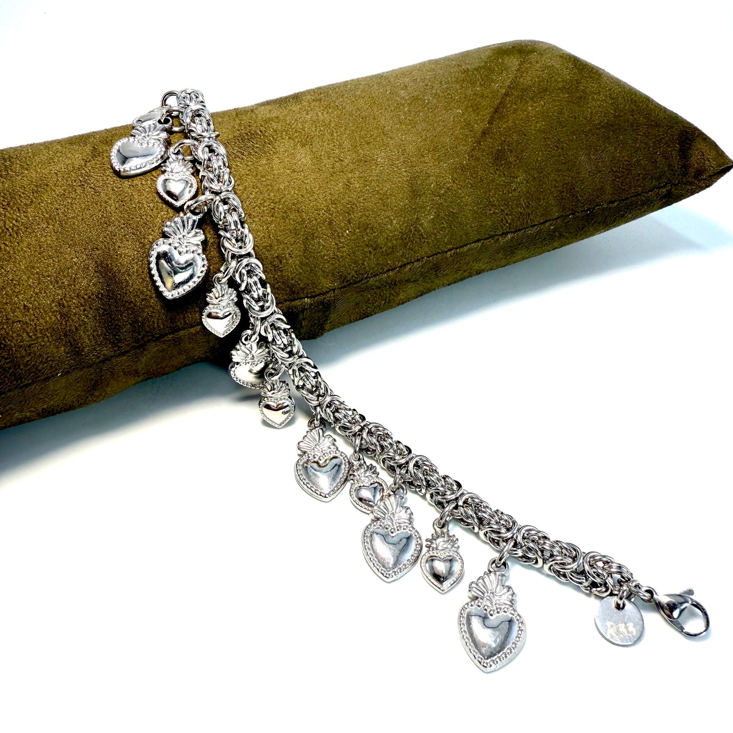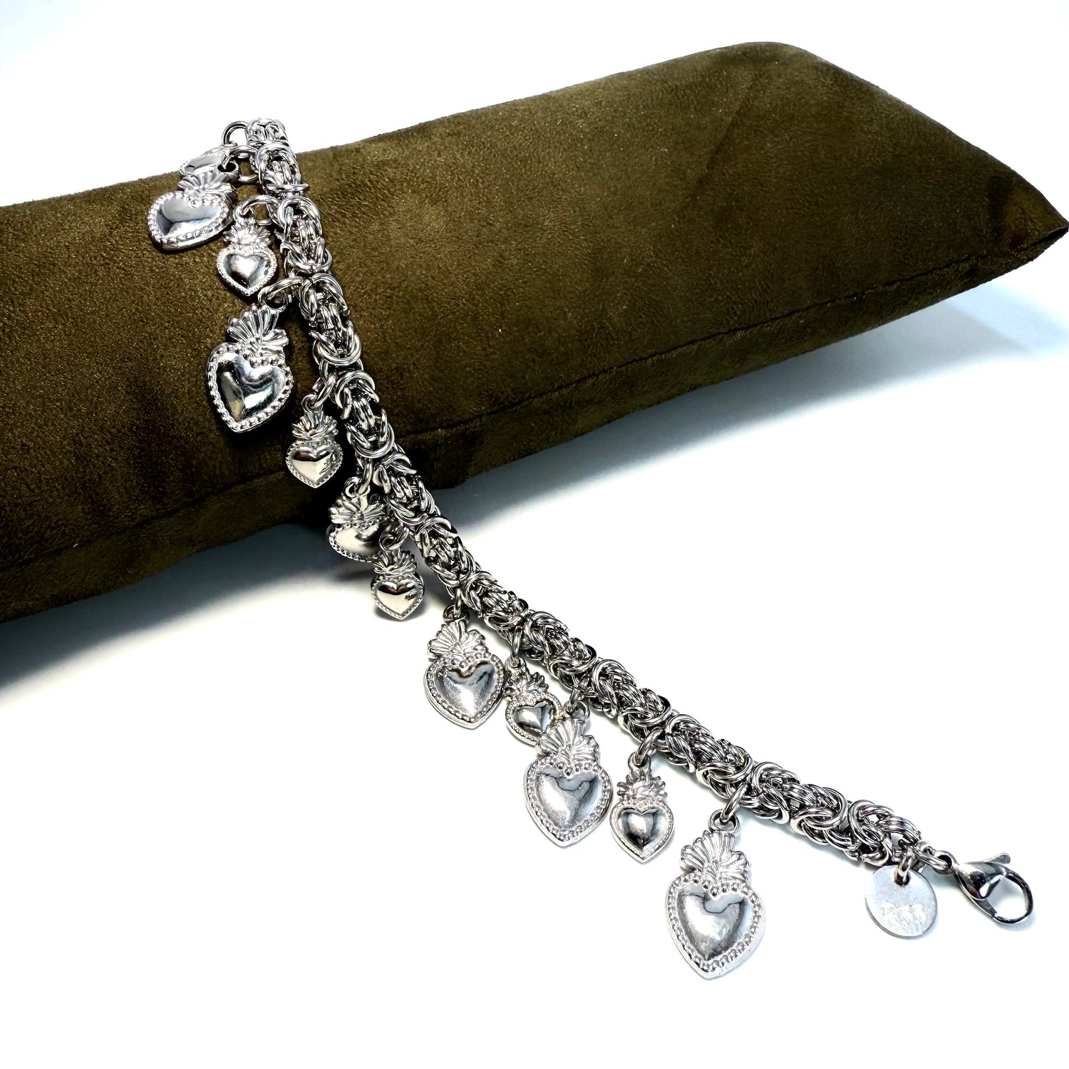 Bracciale Catena bizantina con applicazione di charm Cuori sacri in acciaio inossidabile interamente lavorato a mano secondo le più sapienti tecniche artigianali.