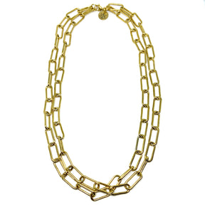 Collana Graffetta doppia in acciaio inossidabile Dorato interamente lavorata a mano da sapienti tecniche artigianali.