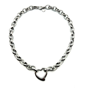 Collana composta interamente in ACCIAIO INOSSIDABILE con catena rolò ovale e Cuore sagomato.