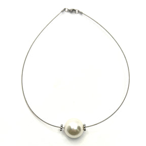 Collana filo in acciaio inossidabile e Perla naturale, diametro 16 mm, interamente lavorata a mano secondo le più sapienti tecniche artigianali.