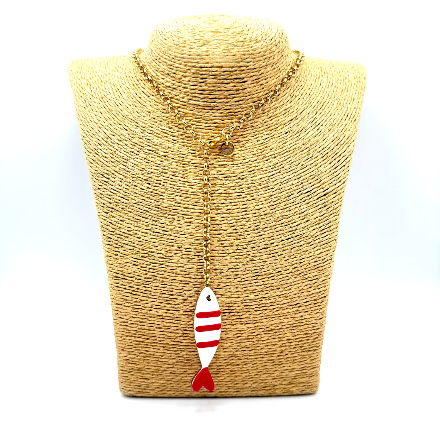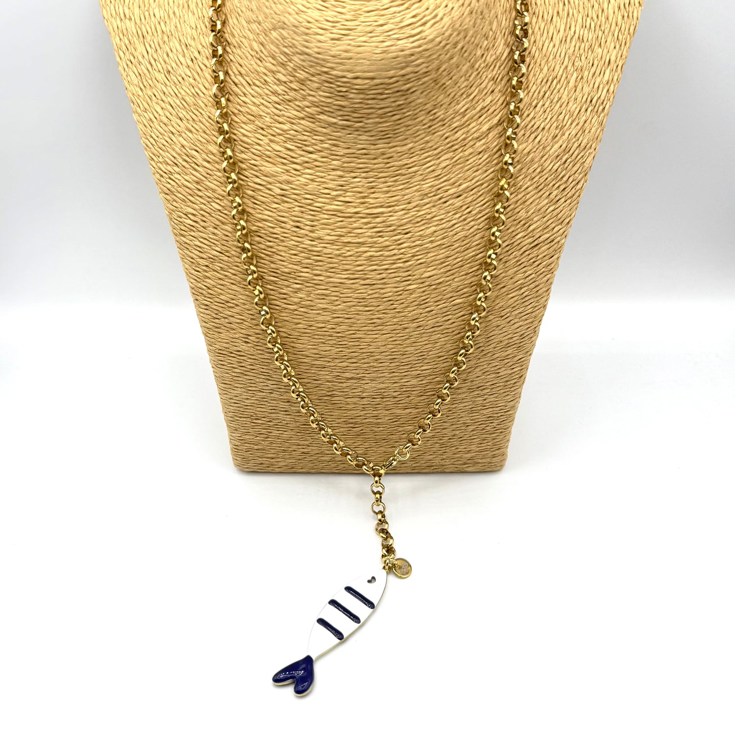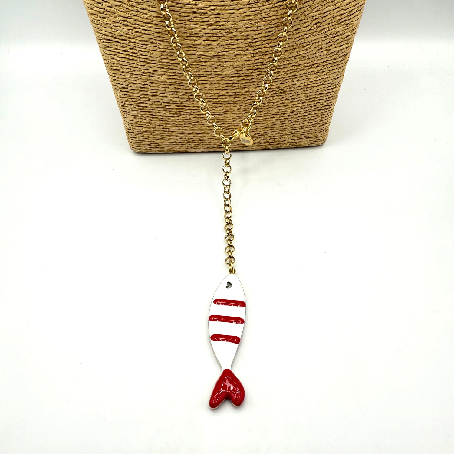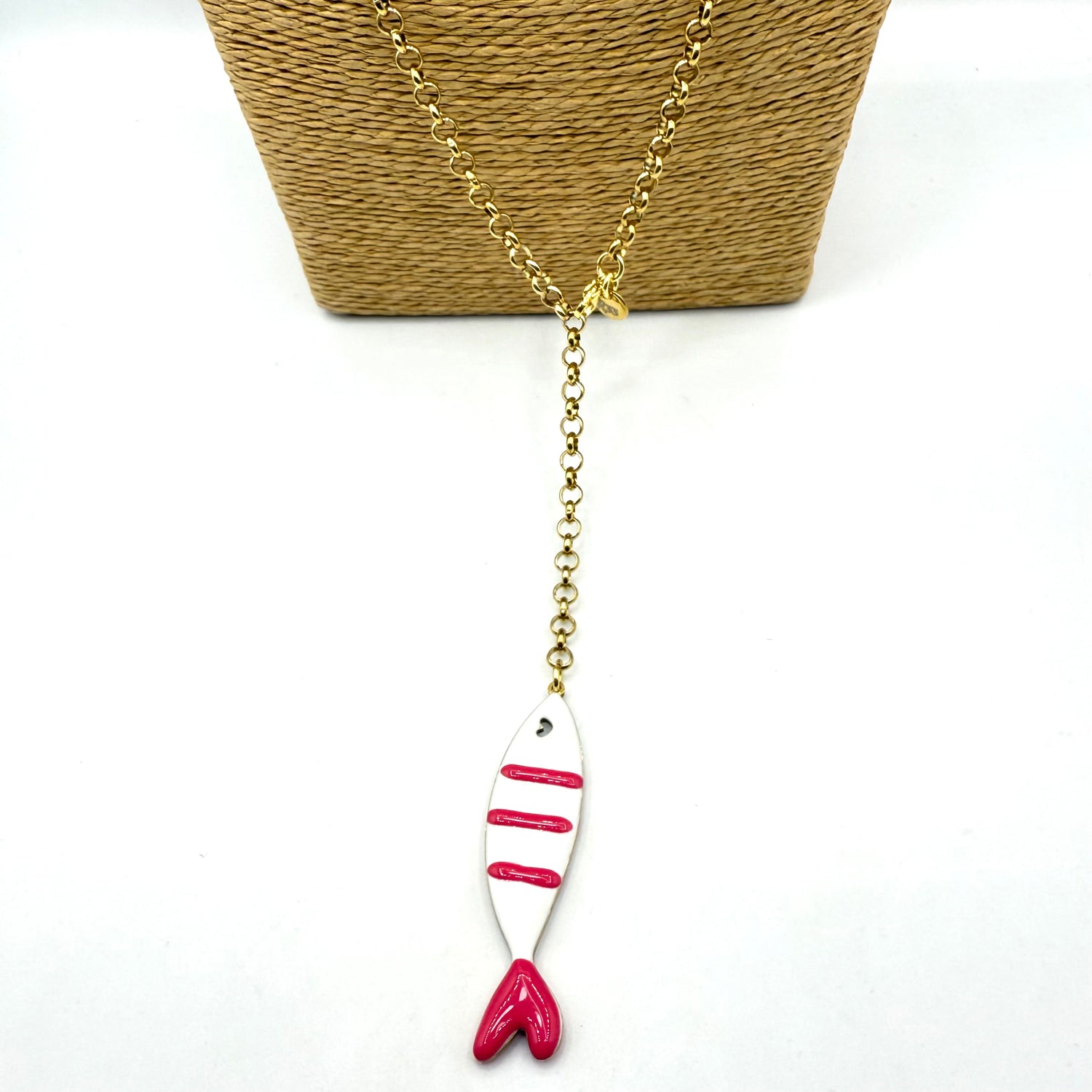 Collana Sardina in acciaio inossidabile e dipinta a mano in Italia, interamente lavorata a mano in Italia secondo le più sapienti tecniche artigianali.