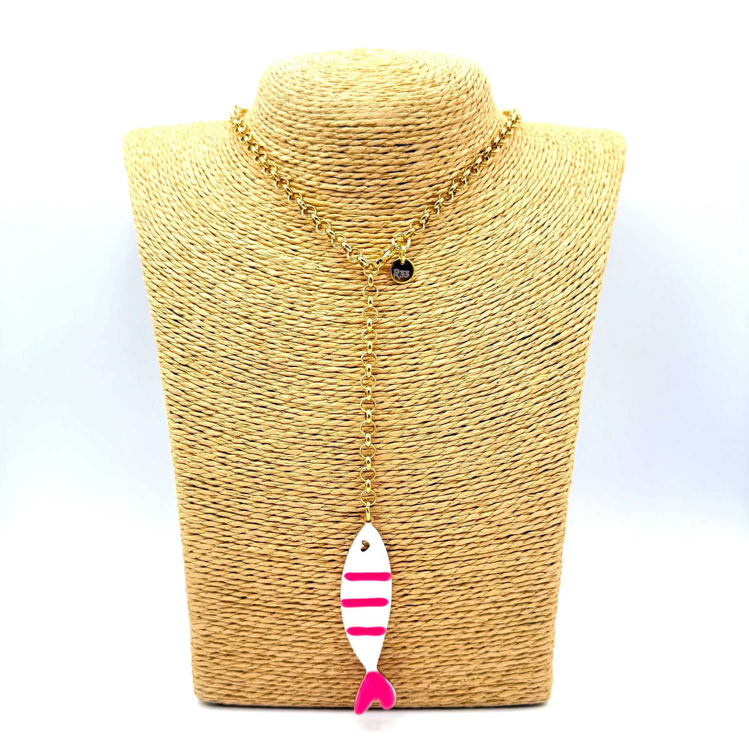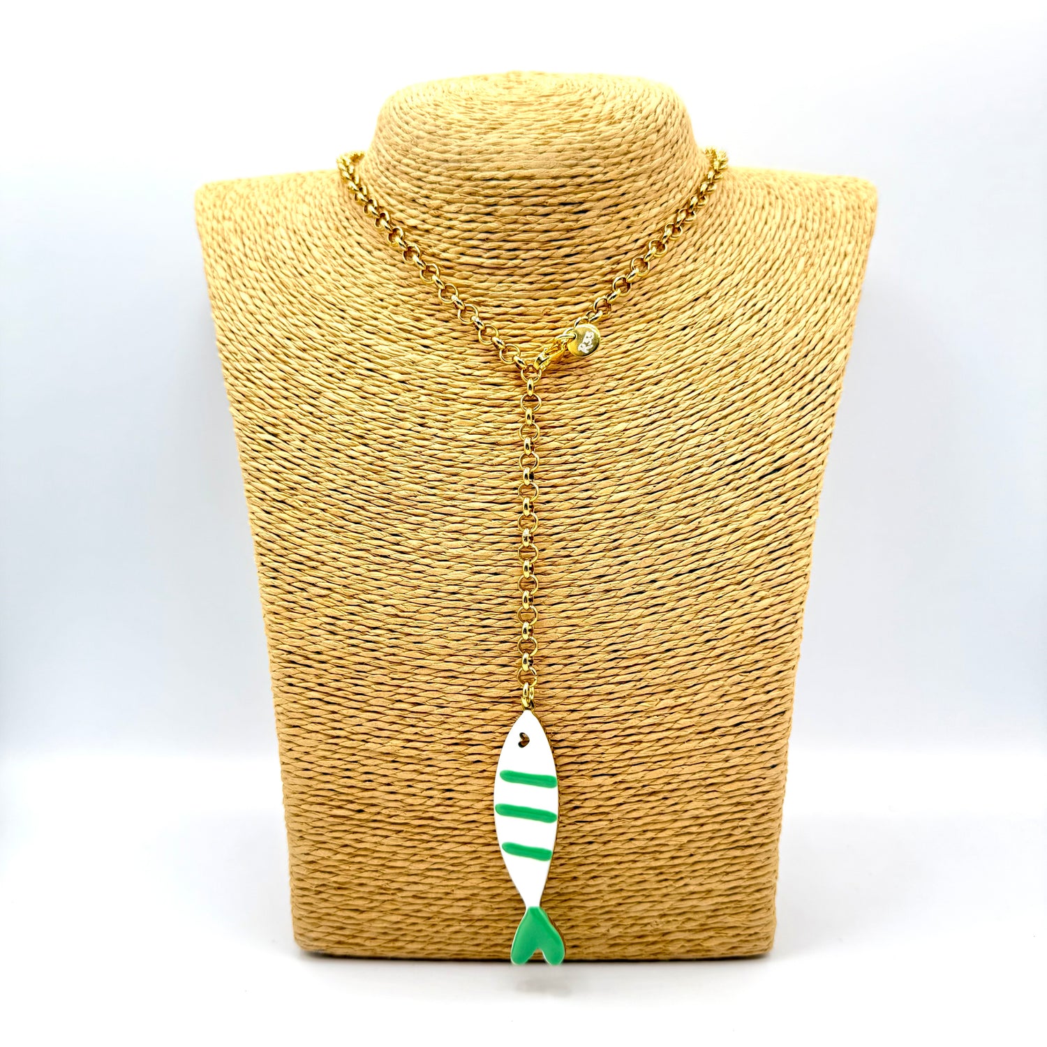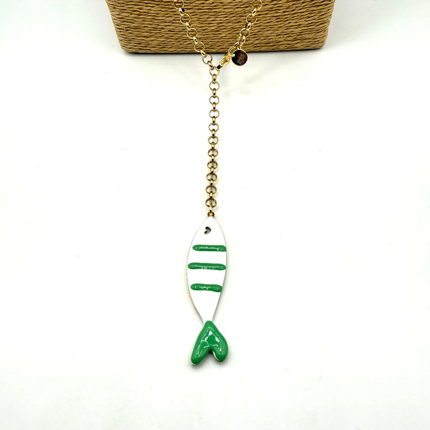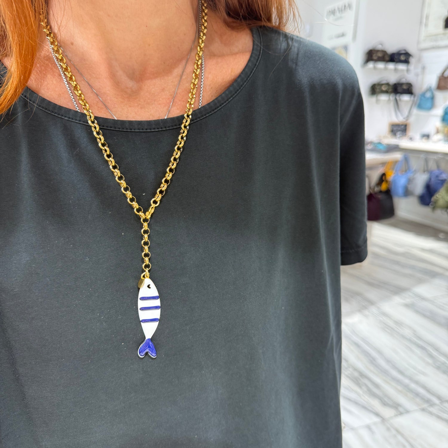 Collana Sardina in acciaio inossidabile e dipinta a mano in Italia, interamente lavorata a mano in Italia secondo le più sapienti tecniche artigianali.