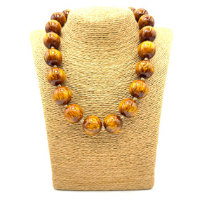 Collana girocollo sfere in resina colore Maffine Occhio di Tigre, rifinita e infilata a mano in Italia con applicazione di gancio ad anello dorato.