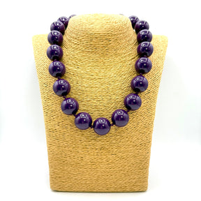 Collana girocollo sfere in resina colore Viola scuro, rifinita e infilata a mano in Italia con applicazione di gancio ad anello in argento.
