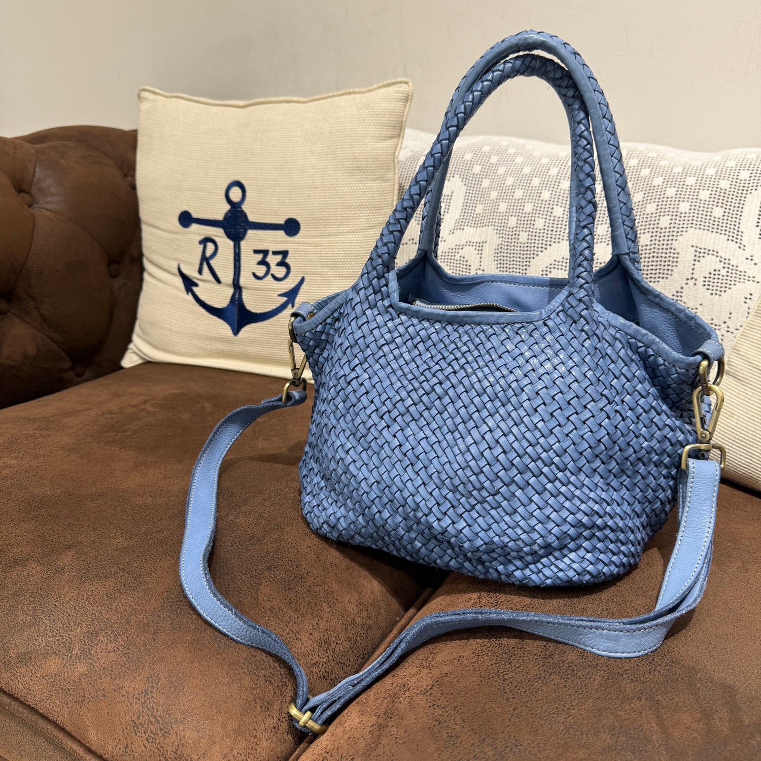 Shopper Intrecciata in vera pelle lavata di vitello e tinta, interamente realizzata e prodotta a mano in Italia da un'accurata selezione dei dettagli, ricami e materiali secondo le più sapienti tecniche artigianali.