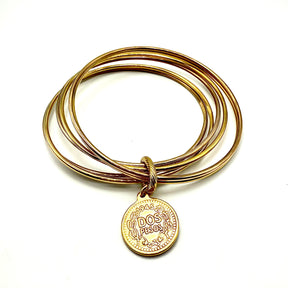 Bracciale rigido in acciaio inossidabile con applicazione di ciondolo moneta, interamente lavorato a mano in Italia in acciaio inossidabile