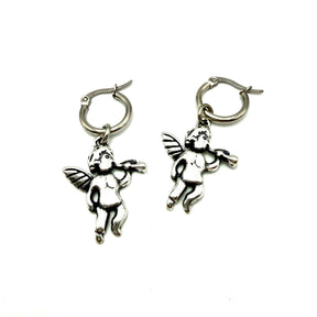 Orecchini Putto con gancio in acciaio inossidabile e ciondolo in Zama, lavorati a mano secondo le più sapienti tecniche artigianali;