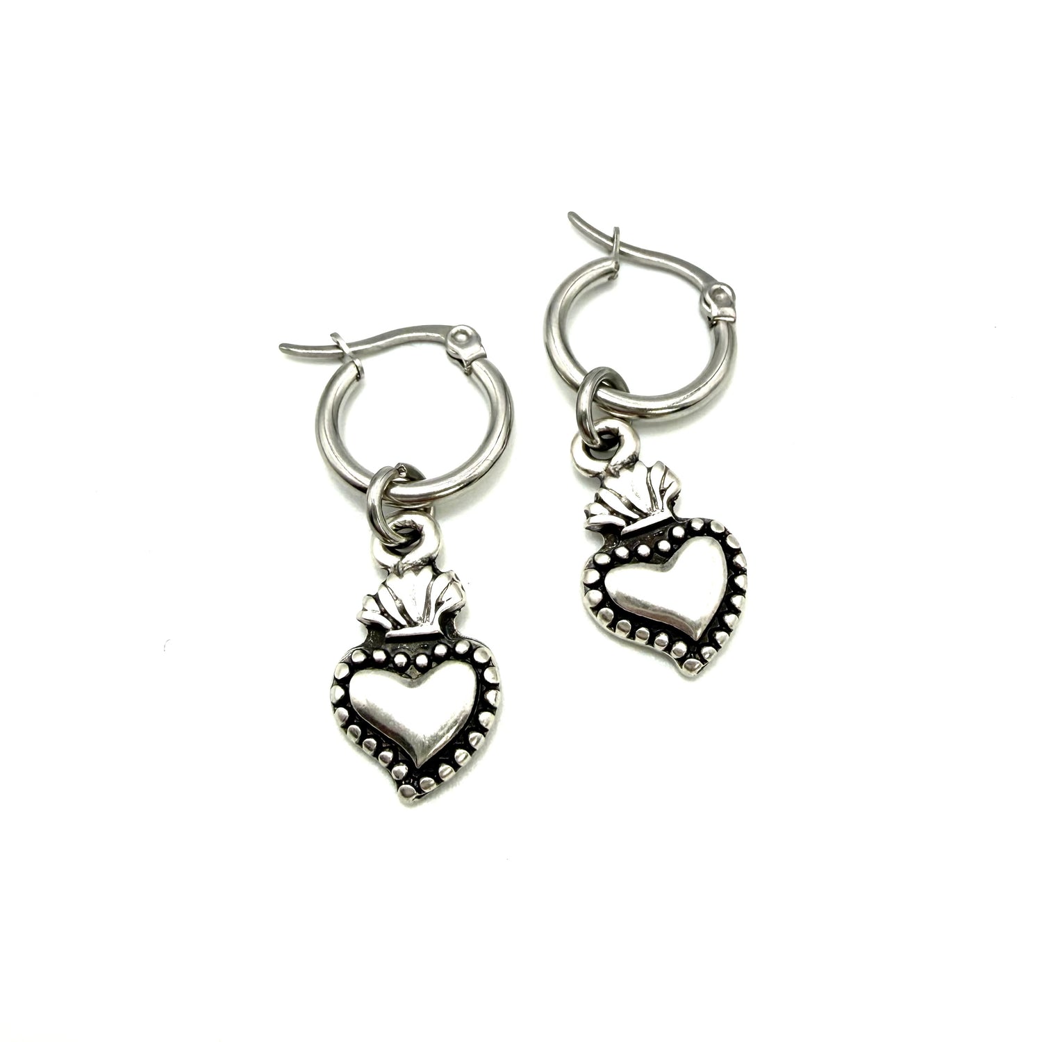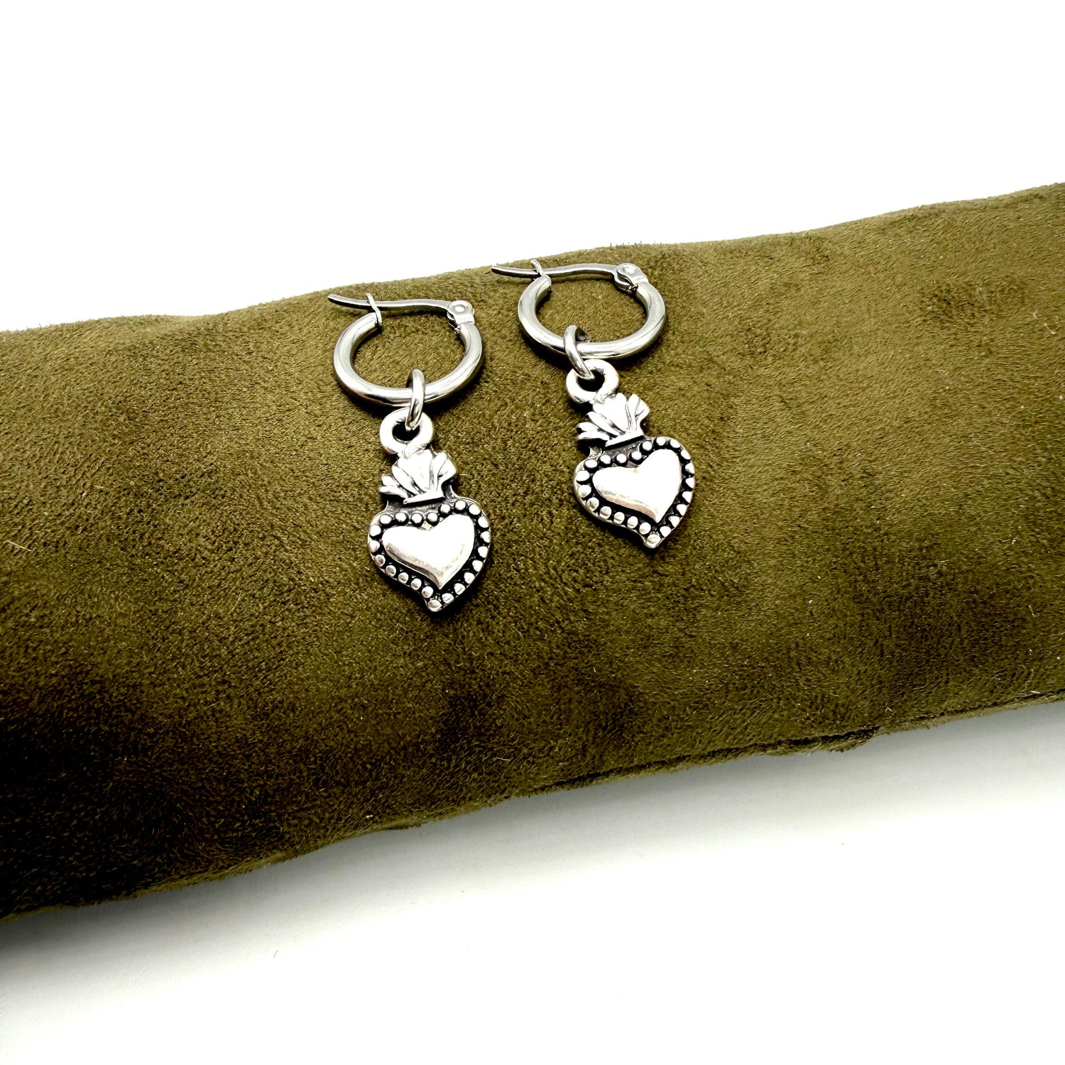 Orecchini ex voto con Cerchi in acciaio inossidabile e ciondolo in Zama, lavorati a mano secondo le più sapienti tecniche artigianali;
