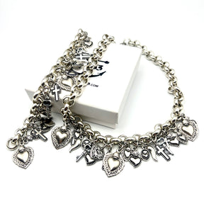 Bracciale e Collana maglia rolò in Alluminio con ciondoli porta fortuna e Cuori Sacri Silver in Zama interamente lavorati a mano secondo le più sapienti tecniche artigianali.