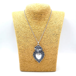 Collana in Acciaio inossidabile con ciondolo Cuore Sacro in Zama, interamente lavorato a mano secondo le più sapienti tecniche artigianali.