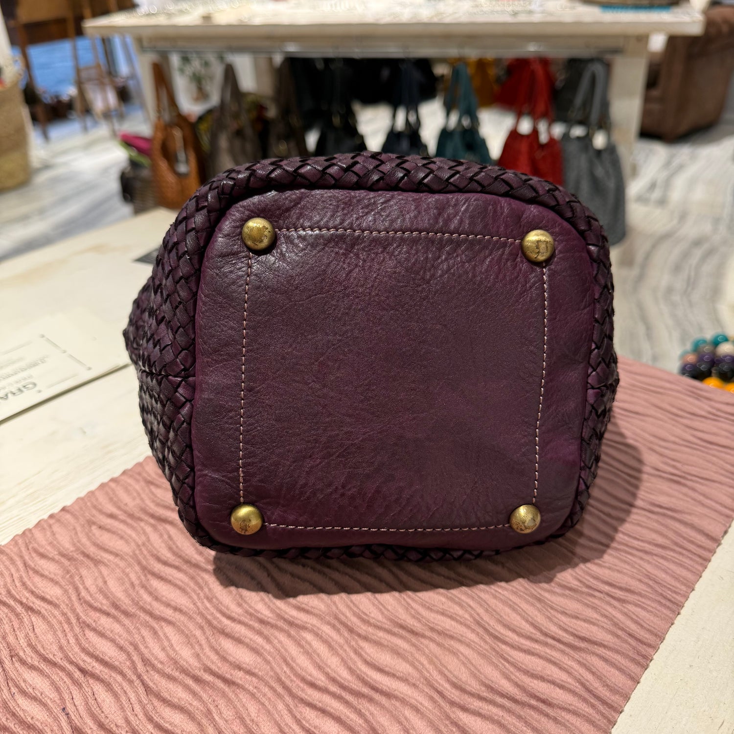 Borsa in vera pelle di vitello lavato intrecciata interamente a mano in Italia secondo le più antiche tecniche artigianali dotata di chiusura con cerniera e tracolla sino a 110 cm, doppia tasca interna con cerniera e porta cellulare.