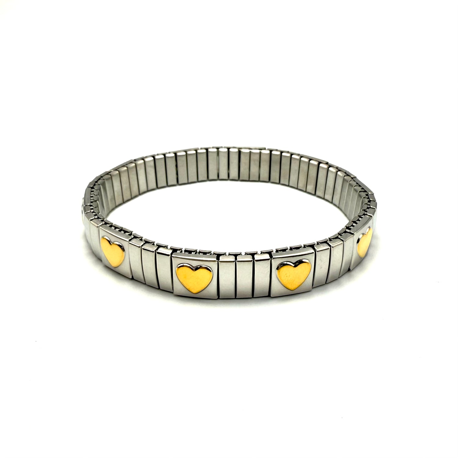 Bracciale maglia Tubogas in acciaio inossidabile con disegno cuore dorato un classico intramontabile, leggero, elasticizzato e Unisex