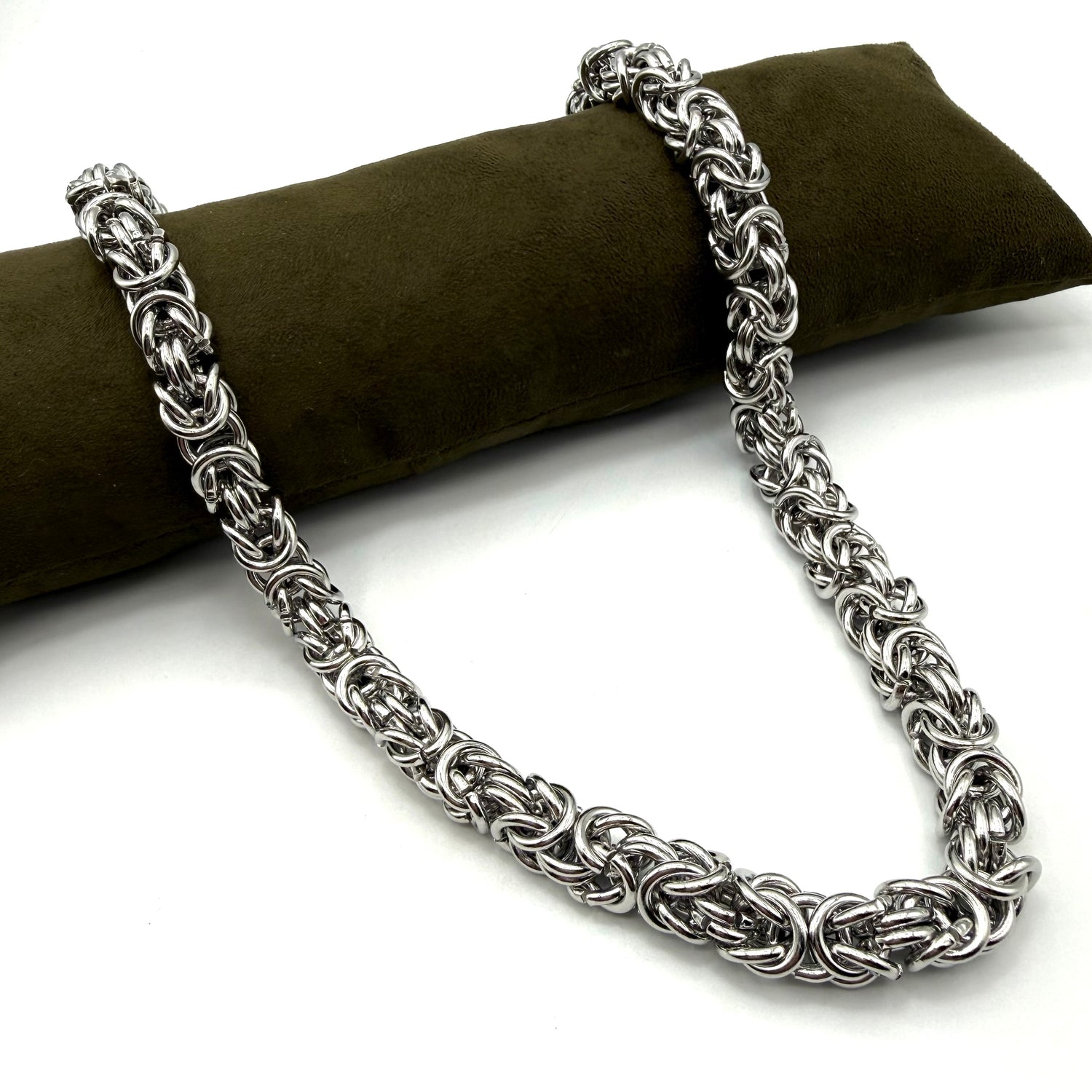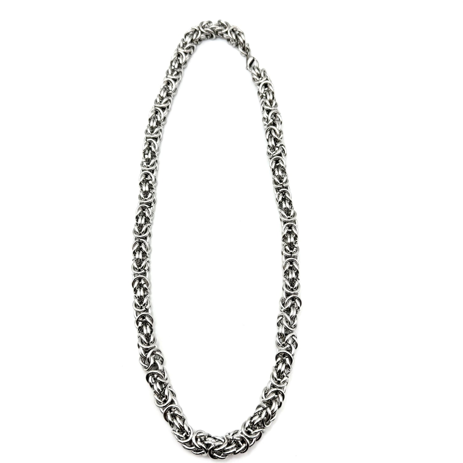 Collana Bizantina Big in Acciaio inossidabile con gancio il moschettone, interamente lavorata a mano secondo le più sapienti tecniche artigianali.