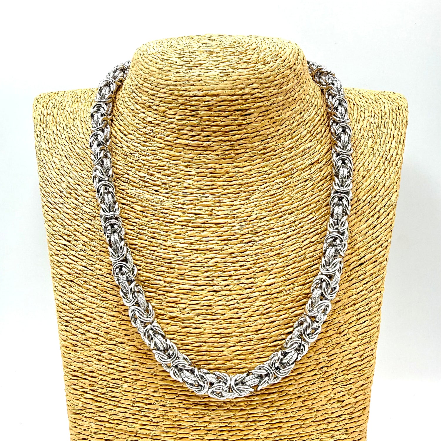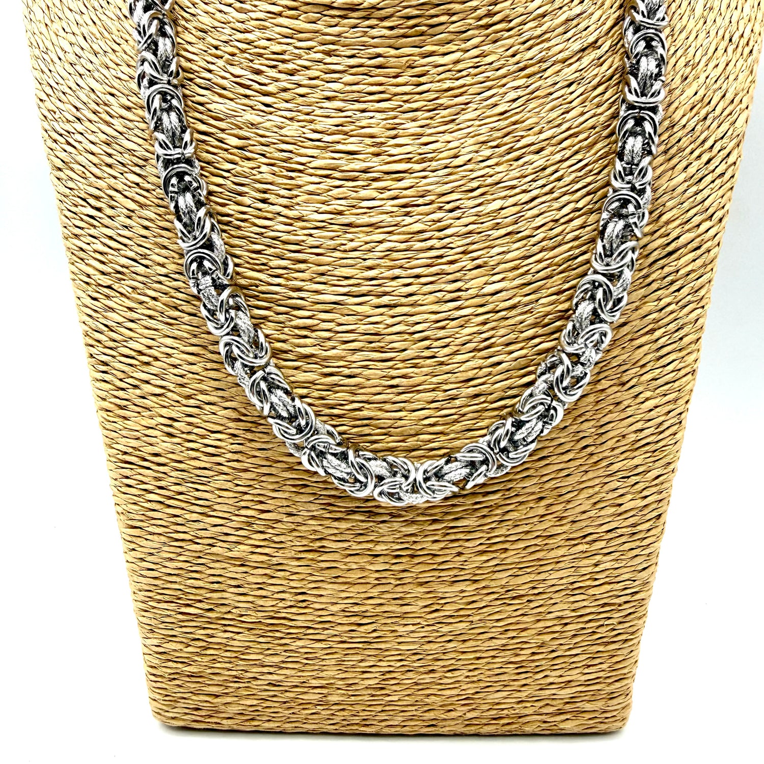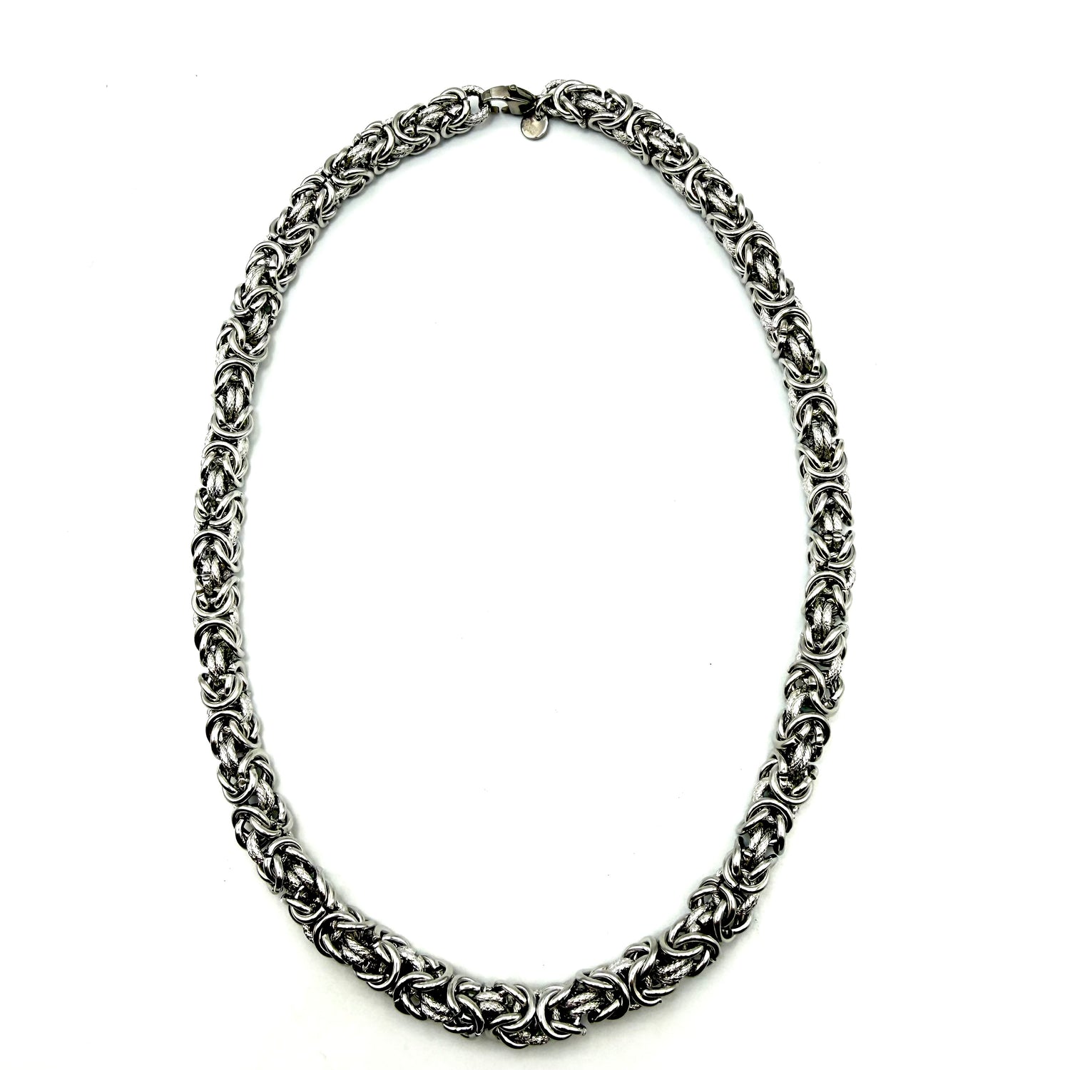 Collana Bizantina in Acciaio inossidabile con applicazione di Anelli godronati interamente lavorata a mano.