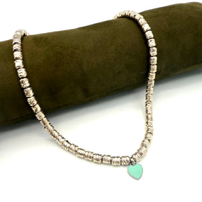 Collana pepite in Argento925 composta da anima e gancio in acciaio inossidabile e charms Cuore Verde Acqua in acciaio inossidabile
