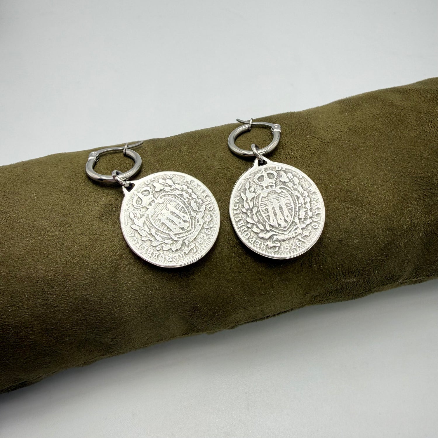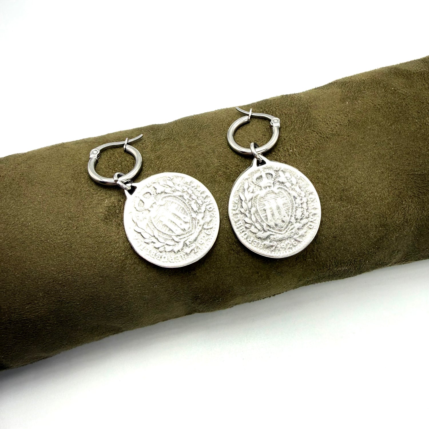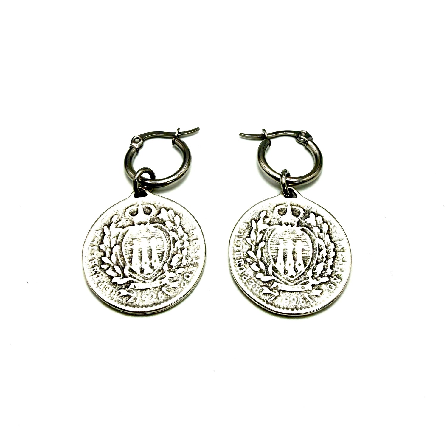 Orecchini Moneta con cerchio in acciaio inossidabile e ciondoli in Zama